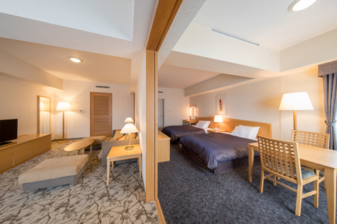 誰もが快適にご利用いただける客室、お身体の不自由な方にも快適にお過ごしいただけます。隣室とのコネクティングも可能で、お連れ様も安心です。